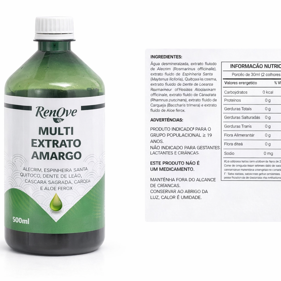 Descrição para catálogo e site de vendas – Renove Multi Extrato Amargo. O Renove Multi Extrato Amargo é um suplemento natural desenvolvido para quem busca equilíbrio e bem-estar no dia a dia. Sua fórmula combina extratos de plantas tradicionais — alecrim, espinheira santa, quitoco, dente-de-leão, cáscara sagrada, carqueja e aloe ferox — reconhecidas por seus benefícios à saúde. No Armazém Natural Saúde, oferecemos este produto com compromisso em proporcionar qualidade e soluções naturais que apoiam seu estilo de vida saudável. Confie na tradição da fitoterapia para renovar sua vitalidade com segurança e eficácia.